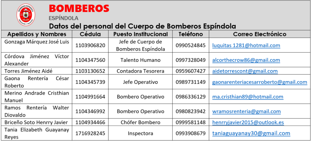 CUERPO DE BOMBEROS DEL CANTÓN ESPÍNDOLA